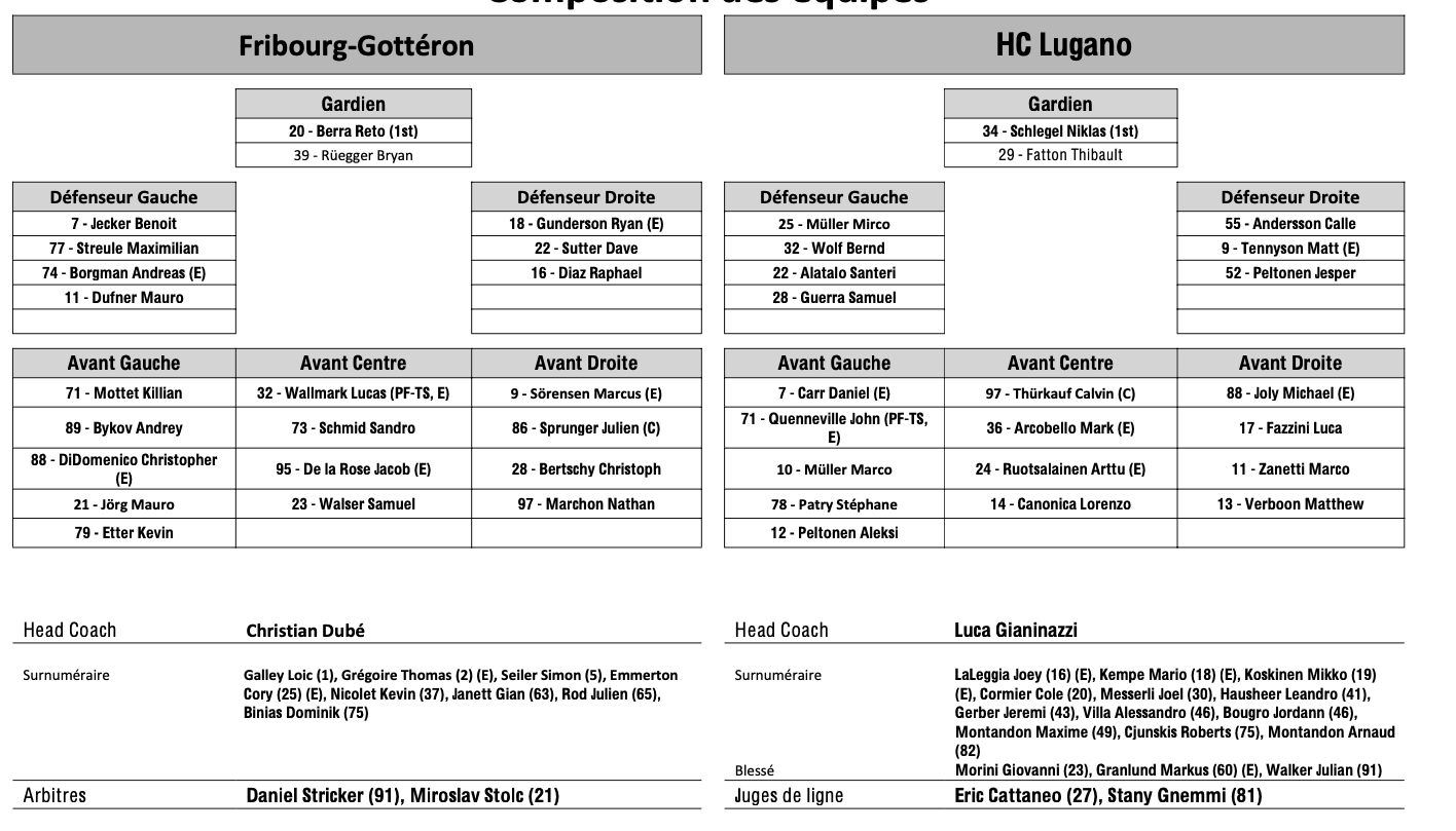 Andreï Bykov à nouveau apte au jeu - Formation des équipes et joueurs indisponibles pour le match Fribourg vs Lugano 20/03/2024 Follow SwissHabs Derniers articles Il y a 37 minutes Formation des équipes et joueurs indisponibles pour le match Zurich vs Genève Il y a 44 minutes Formation des équipes et joueurs indisponibles pour le match Davos vs Kloten Il y a 46 minutes Formation des équipes et joueurs indisponibles pour le match Lugano vs Lausanne Il y a 48 minutes Formation des équipes et joueurs indisponibles pour le match Langnau vs Rapperswil Il y a 50 minutes Formation des équipes et joueurs indisponibles pour le match Zoug vs Ambri
