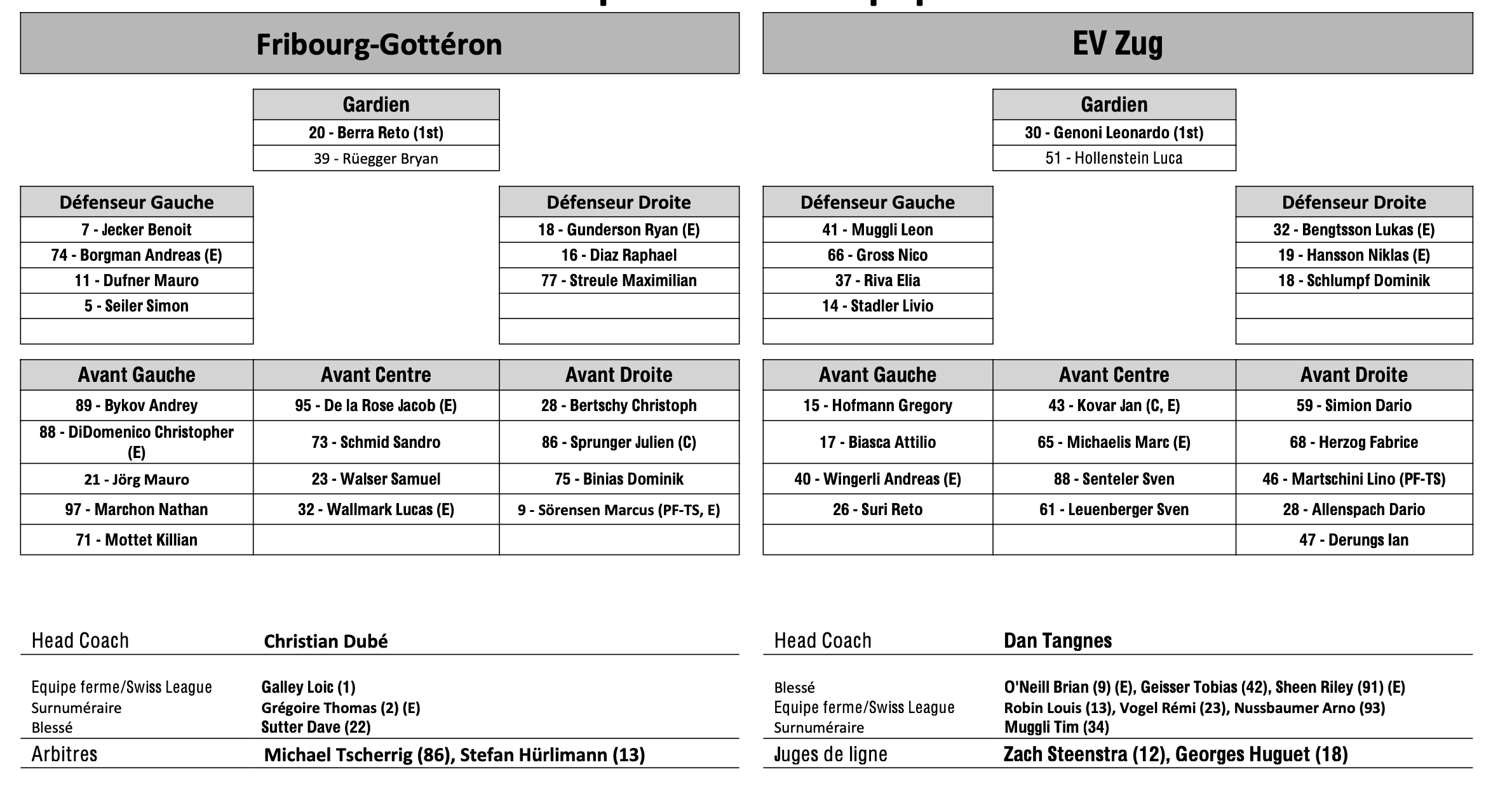 Formation des équipes et joueurs indisponibles pour le match Fribourg vs Zoug 30/01/2024 Follow SwissHabs Derniers articles Il y a 47 minutes Ambri prolonge Jussi Tapola et signe Petr Kodytek Il y a une heure Robin Grossmann manquera les derniers matchs de la saison régulière Il y a 2 heures Le masque de Remo Giovannini dans les détails Il y a 5 heures Quelques semaines d'absence pour Dominic Zwerger Il y a 7 heures Les autres faits à retenir de cette nuit de NHL et de celle à venir