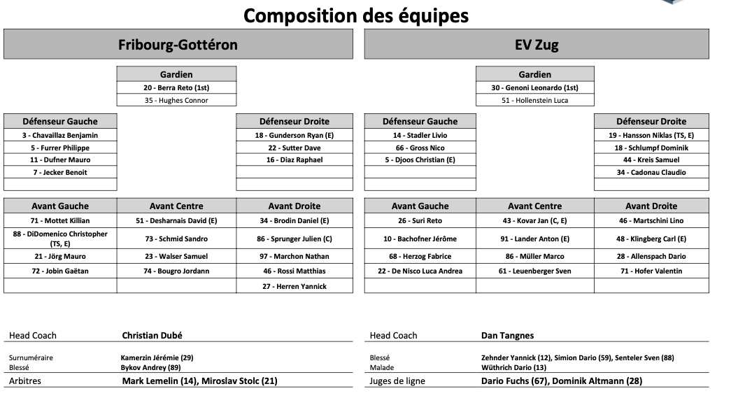 Formation des équipes et joueurs indisponibles pour le match Fribourg vs Zoug 30/10/2021 Follow SwissHabs Derniers articles Il y a 4 heures Formation des équipes et joueurs indisponibles pour le match Fribourg vs Rapperswil Il y a 6 heures Nicole Vallario prend du gallon à New-York, Kira Juodikis rejoint l'équipe Il y a 10 heures Mathieu Maret rejoint Martigny Il y a 11 heures Toujours l'incertitude autour d'Enzo Corvi Il y a 11 heures Un nouvel heureux événement pour Kevin Fiala et sa famille
