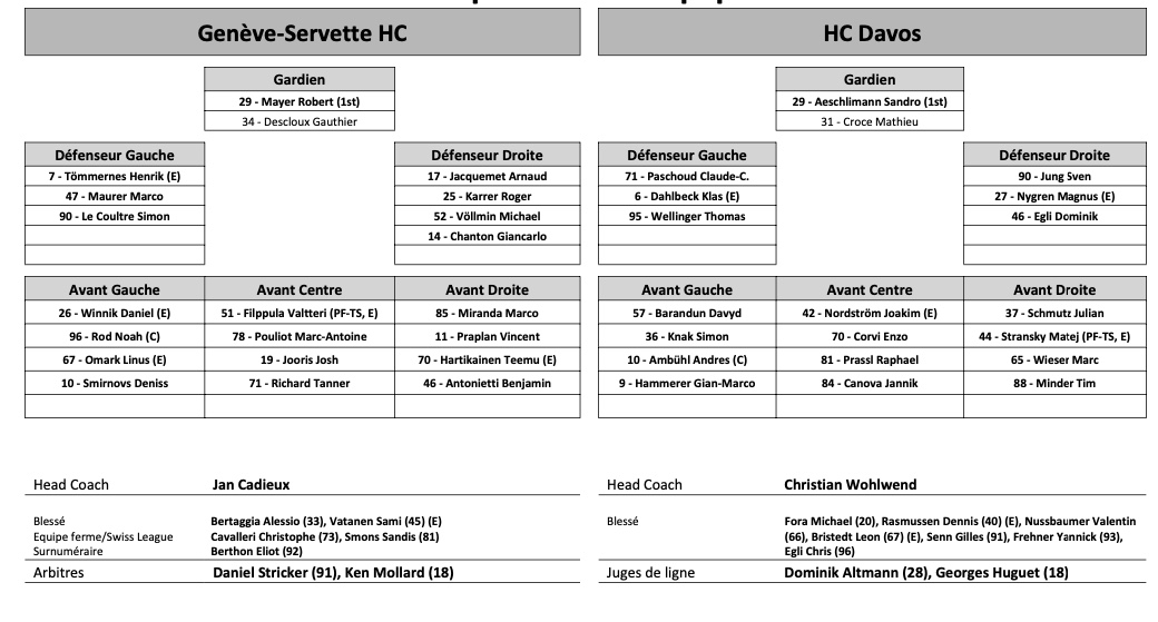 Formation des équipes et joueurs indisponibles pour le match Genève vs Davos 23/10/2022 Follow SwissHabs Derniers articles Il y a 10 heures Zoug dévoile son nouveau logo Il y a 10 heures Deux prolongations à Zurich Il y a 12 heures Formation des équipes et joueurs indisponibles pour le match Zurich vs Genève Il y a 12 heures Formation des équipes et joueurs indisponibles pour le match Davos vs Kloten Il y a 12 heures Formation des équipes et joueurs indisponibles pour le match Lugano vs Lausanne