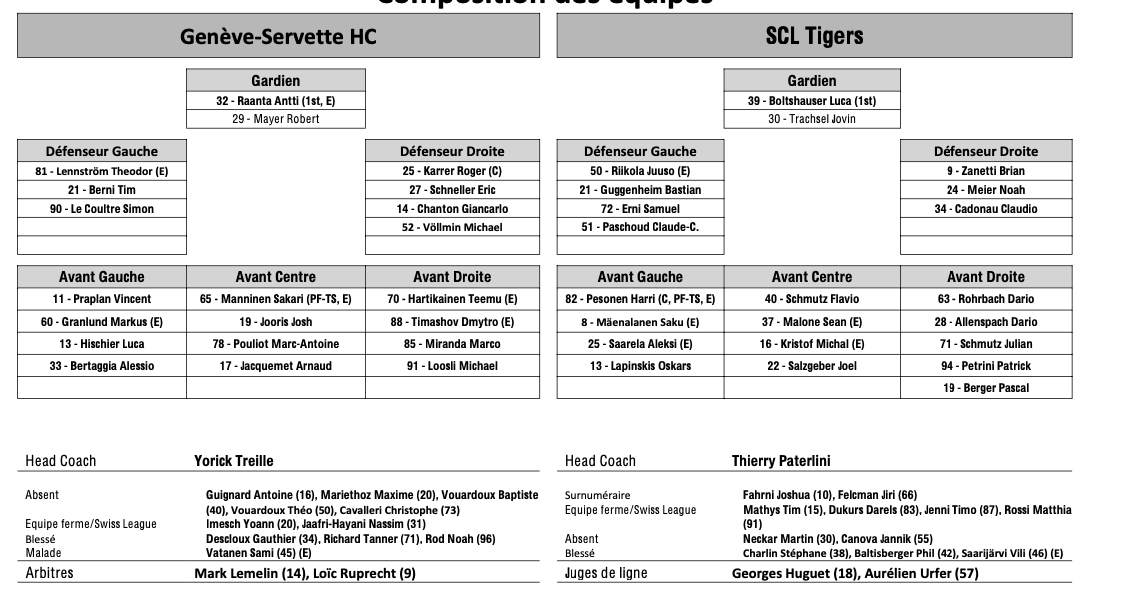 Formation des équipes et joueurs indisponibles pour le match Genève vs Langnau 15/02/2025 Follow SwissHabs Derniers articles Il y a 6 heures Davos pourrait signer un nouveau record de National League Il y a 9 heures Rikard Grönborg ne pourra plus parler à ses joueurs trois matchs durant Il y a 10 heures Martin Filander continuera sans doute son parcours en Suède Il y a 10 heures Jacob de la Rose incertain pour le match de demain Il y a 12 heures Fribourg-Gottéron engage un nouvel étranger