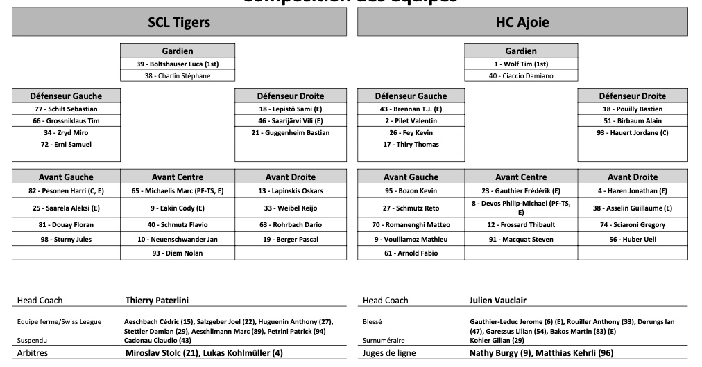 Formation des équipes et joueurs indisponibles pour le match Langnau vs Ajoie 13/01/2023 Follow SwissHabs Derniers articles Il y a une heure Rikard Grönborg ne pourra plus parler à ses joueurs trois matchs durant Il y a 2 heures Martin Filander continuera sans doute son parcours en Suède Il y a 3 heures Jacob de la Rose incertain pour le match de demain Il y a 4 heures Fribourg-Gottéron engage un nouvel étranger Il y a 7 heures Colin Lindemann prolonge son contrat avec Zoug jusqu'en 2028