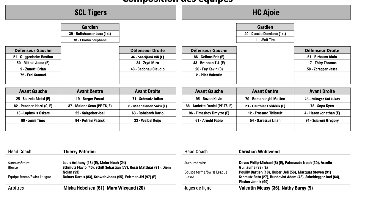 Formation des équipes et joueurs indisponibles pour le match Langnau vs Ajoie 16/02/2024 Follow SwissHabs Derniers articles Il y a 3 minutes Saison terminée pour Luca Hollenstein, un remplaçant déjà trouvé Il y a 25 minutes Coire prolonge son buteur Liekit Reichle Il y a 2 heures Les autres faits à retenir de cette nuit de NHL et de celle à venir Il y a 2 heures U18-Elit et U21-Elit : début des play-offs et du tour de classement Il y a 4 heures Un doublé et une première étoile pour Lian Bichsel