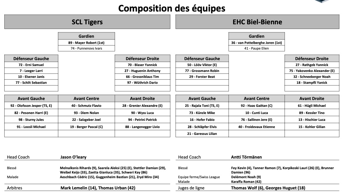 Formation des équipes et joueurs indisponibles pour le match Langnau vs Bienne 10/12/2021 Follow SwissHabs Derniers articles Il y a 7 heures Formation des équipes et joueurs indisponibles pour le match Ambri vs Ajoie Il y a 7 heures Formation des équipes et joueurs indisponibles pour le match Fribourg vs Rapperswil Il y a 7 heures Formation des équipes et joueurs indisponibles pour le match Davos vs Zoug Il y a 9 heures Fin de carrière pour Linus Klasen ? Il y a 10 heures Victor Ejdsell va rejoindre Färjestad