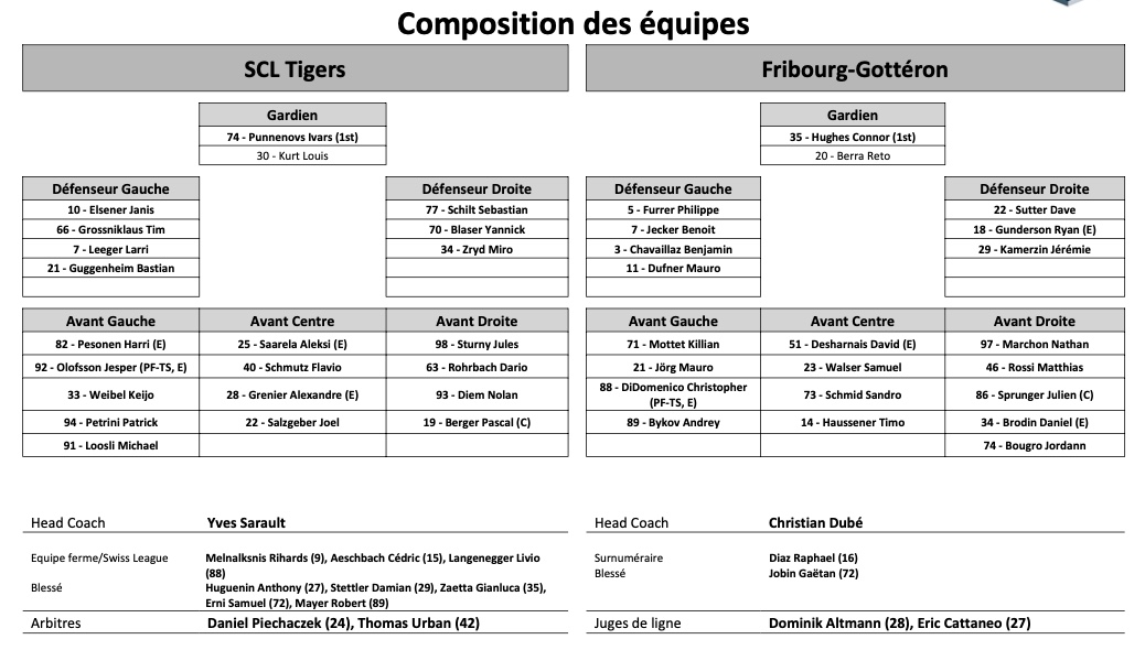 Formation des équipes et joueurs indisponibles pour le match Langnau vs Fribourg 26/02/2022 Follow SwissHabs Derniers articles Il y a une heure Les autres faits à retenir de cette nuit de NHL et de celle à venir Il y a une heure Damiano Ciaccio n’est pas encore prêt à raccrocher les patins Il y a 2 heures Janis Moser toujours aussi solide, Akira Schmid retrouve l'action en cours de match pour signer un blanchissage Il y a 3 heures Matthew Schaefer continue à écrire l'histoire de la NHL Il y a 3 heures Auston Matthews n'a pas échappé à l'opération