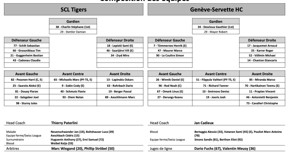 Formation des équipes et joueurs indisponibles pour le match Langnau vs Genève 01/11/2022 Follow SwissHabs Derniers articles Il y a 33 minutes Les autres faits à retenir de cette nuit de NHL et de celle à venir Il y a 58 minutes Un nouveau record d'affluence pour un match féminin aux États-Unis Il y a une heure Lars Steiner et Guus Van der Kaaij trouvent le fond des filets Il y a une heure Akira Schmid et les Golden Knights défaits par les Capitals Il y a 8 heures La saison de NHL de Nino Niederreiter serait terminée