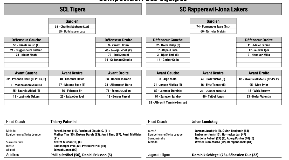 Formation des équipes et joueurs indisponibles pour le match Langnau vs Rapperswil 19/01/2025 Follow SwissHabs Derniers articles Il y a 13 minutes Mauvais timing pour aller chercher sa crosse Il y a 18 minutes Un combat de gardien en AHL Il y a 29 minutes Alina Müller enchaîne sur ses bases olympiques Il y a 39 minutes Hischier et Meier marquent dans la victoire des Devils Il y a 11 heures Zoug dévoile son nouveau logo