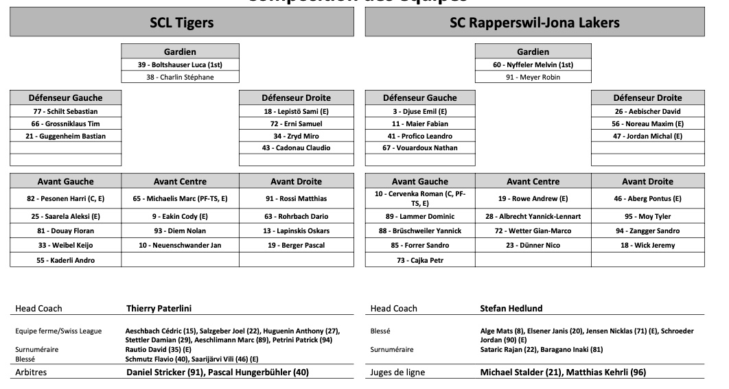 Formation des équipes et joueurs indisponibles pour le match Langnau vs Rapperswil 14/02/2023 Follow SwissHabs Derniers articles Il y a 7 heures Ludvig Johnson échange régulièrement avec sa franchise de NHL Il y a 8 heures EHC Coire : Björn Gerhard a une vision claire pour l'avenir de la Swiss League Il y a 9 heures Les autres faits à retenir de cette nuit de NHL et de celle à venir Il y a 10 heures Un nouveau record d'affluence pour un match féminin aux États-Unis Il y a 10 heures Lars Steiner et Guus Van der Kaaij trouvent le fond des filets