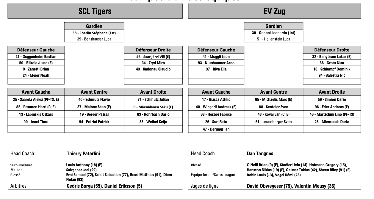 Formation des équipes et joueurs indisponibles pour le match Langnau vs Zoug 25/02/2024 Follow SwissHabs Derniers articles Il y a 43 minutes T.J. Brennan tient toujours la grande forme Il y a 3 heures Roger Bader reste à la tête de l'équipe d'Autriche Il y a 4 heures Comment Sierre prépare son éventuelle promotion en National League Il y a 5 heures Les Lakers vivront également un week-end important dans les urnes Il y a 6 heures La Chaux-de-Fonds lance un programme de soutien pour viser la National League