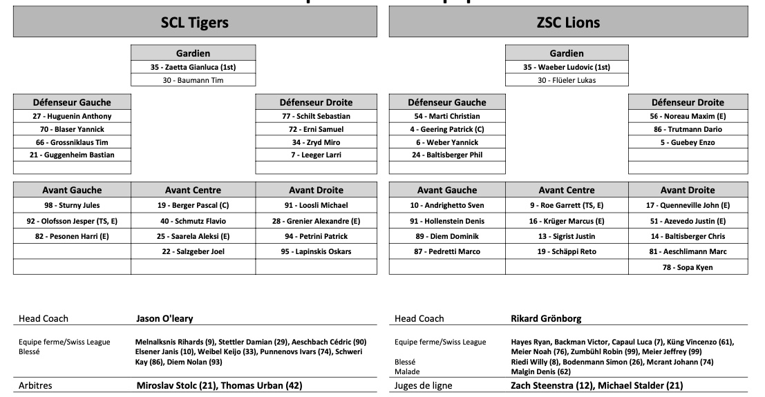 Formation des équipes et joueurs indisponibles pour le match Langnau vs Zurich 18/09/2021 Follow SwissHabs Derniers articles Il y a 28 minutes Les autres faits à retenir de cette nuit de NHL et de celle à venir Il y a 45 minutes Dan Tangnes signe un bien bel exploit avec Rögle Il y a 59 minutes Une 21e saison à plus d'un point par match pour Sidney Crosby Il y a une heure Les Devils stoppent la série du Canadien Il y a une heure Saison terminée pour Maxime Sauthier, les Huskies devront passer par un septième match