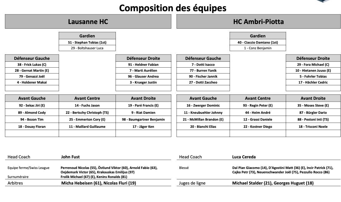 Formation des équipes et joueurs indisponibles pour le match Lausanne vs Ambri 16/01/2022 Follow SwissHabs Derniers articles Il y a 8 minutes Quel est le prix à payer pour suivre un match de hockey en famille ? Il y a 47 minutes Les lionnes lausannoises reviennent sur leur titre Il y a une heure Les faits à retenir de cette petite nuit de NHL et de celle à venir Il y a 7 heures Resumé des matchs de la soirée en National League Il y a 12 heures Formation des équipes et joueurs indisponibles pour le match Lugano vs Zurich