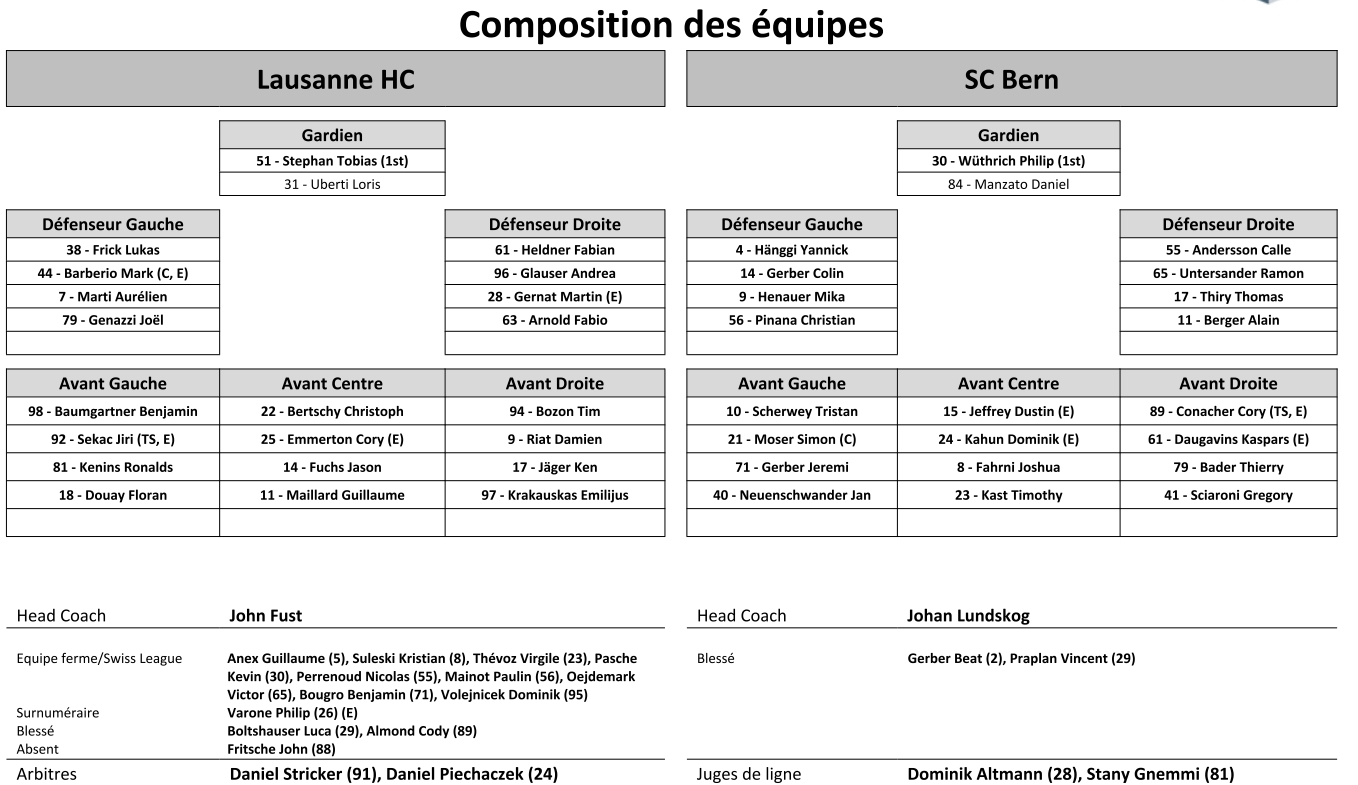 Il y a un jour Finale de Swiss League acte III : formation des équipes et joueurs indisponibles pour le match Sierre vs La Chaux-de-Fonds