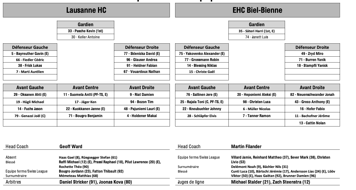 Formation des équipes et joueurs indisponibles pour le match Lausanne vs Bienne 05/12/2024 Follow SwissHabs Derniers articles Il y a 7 heures Les Sharks prolongent l'attaquant Kiefer Sherwood pour cinq ans Il y a 9 heures Tyler Myers à Dallas Il y a 9 heures Le point sur l'effectif de Lugano Il y a 12 heures Ambri prolonge Jussi Tapola et signe Petr Kodytek Il y a 13 heures Robin Grossmann manquera les derniers matchs de la saison régulière