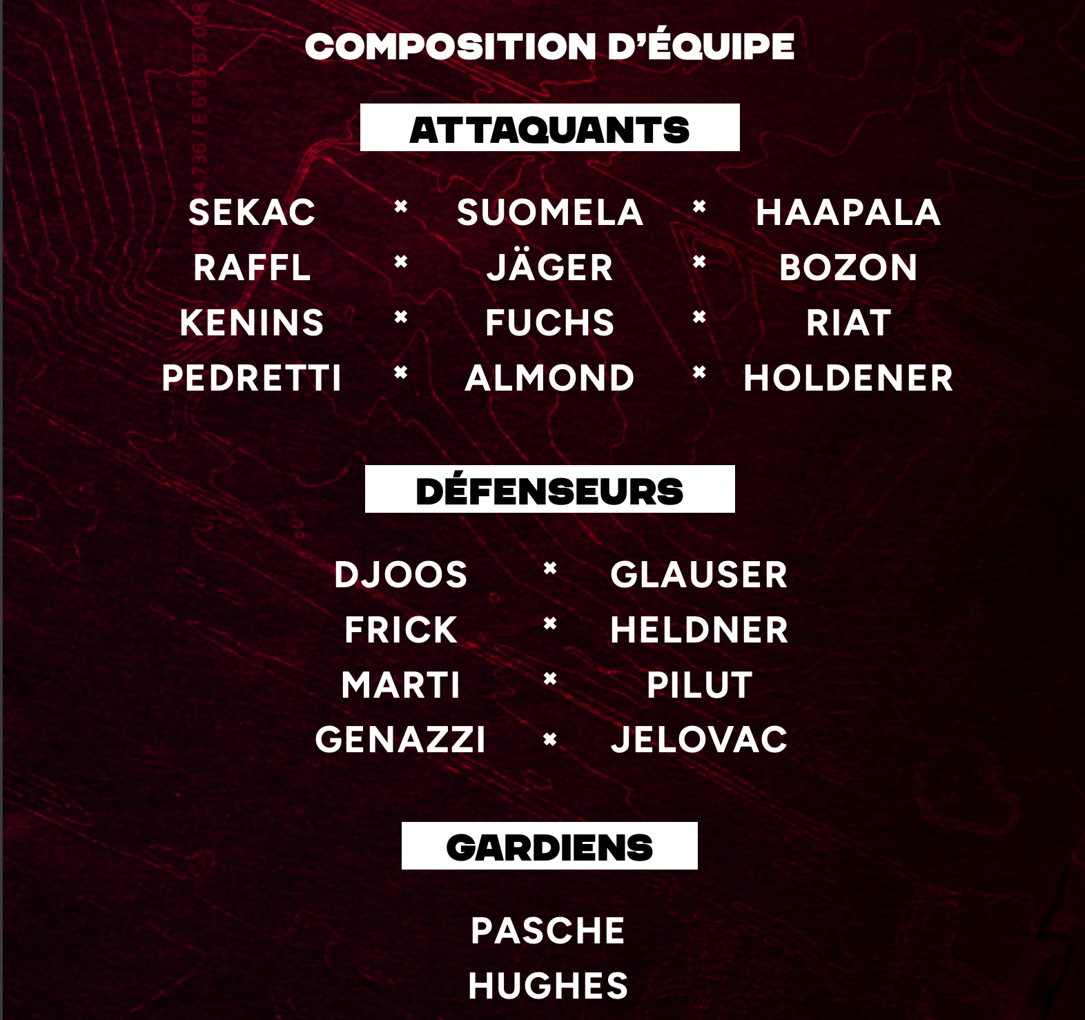 Formation des équipes et joueurs indisponibles pour le match Lausanne vs Davos 23/01/2024 Follow SwissHabs Derniers articles Il y a 2 minutes Jonathan Hazen devra patienter avant de connaître son avenir Il y a 44 minutes Une victoire pour Jordan Forget, une défaite et un but pour Luca Nappiot Il y a 52 minutes Timo Meier et Nico Hischier très actifs dans la victoire des Devils Il y a une heure Les Oilers acquièrent Dickinson et Dach de Chicago Il y a une heure Le Utah Mammoth acquiert le défenseur MacKenzie Weegar des Flames de Calgary