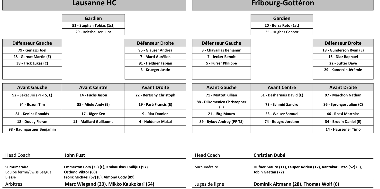 Formation des équipes et joueurs indisponibles pour le match Lausanne vs Fribourg 27/03/2022 Follow SwissHabs Derniers articles Il y a 6 minutes HC Ajoie : la liste des blessés s'amenuise Il y a 32 minutes Les détails des championnats du Monde Féminins 2026 Il y a une heure Radim Rulík quittera lui aussi son poste de sélectionneur ce printemps Il y a une heure Un point sur le poste de coach à Berne Il y a 4 heures Un contrat de longue durée pour Gaël Christe en Ajoie