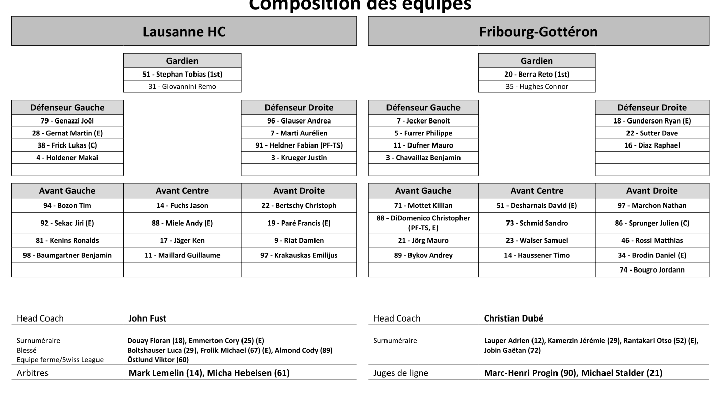 Formation des équipes et joueurs indisponibles pour le match Lausanne vs Fribourg 31/03/2022 Follow SwissHabs Derniers articles Il y a 11 minutes Les autres faits à retenir de cette nuit de NHL et de celle à venir Il y a 22 minutes Alina Mueller perd sa coéquipière autrichienne Il y a 37 minutes Les fans des Rangers n'ont bien entendu pas oublié Artemi Panarin Il y a une heure Un sacré combat entre Lian Bichsel et Jack McBain Il y a une heure Une victoire en prolongation pour les Devils