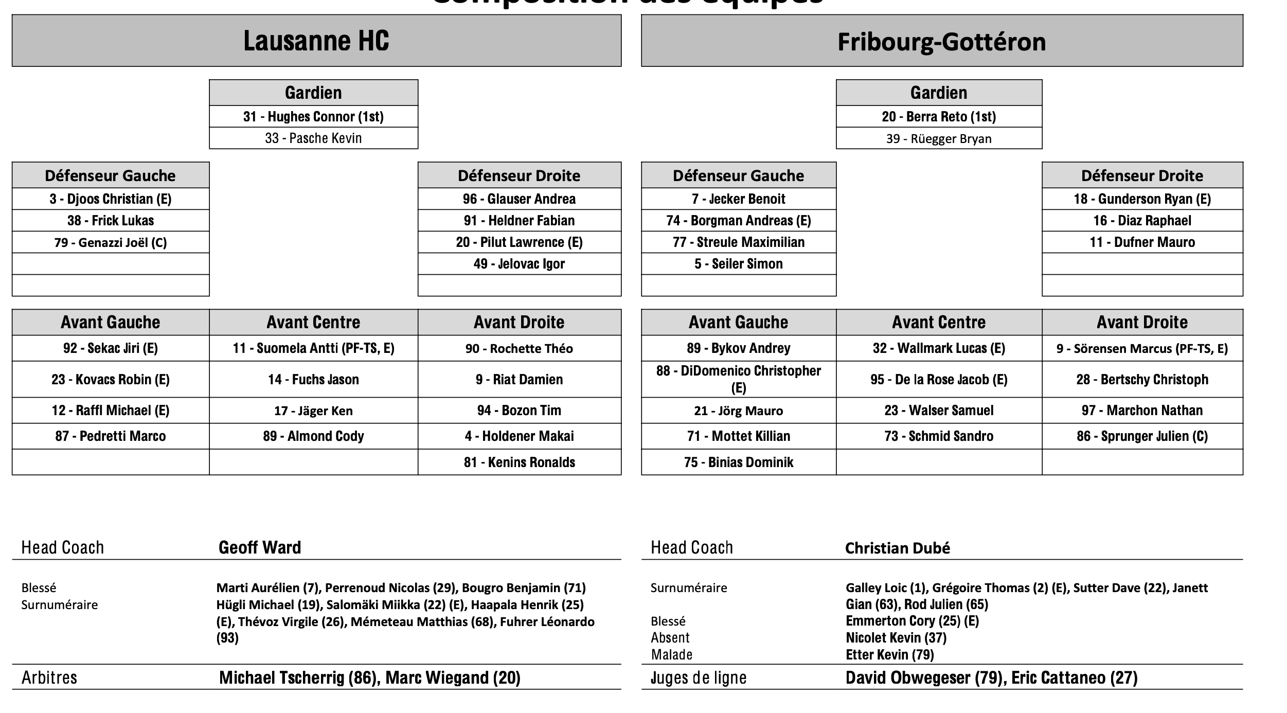 Formation des équipes et joueurs indisponibles pour le match Lausanne vs Fribourg 08/04/2024 Follow SwissHabs Derniers articles Il y a une heure Women's League : début des pré-play-offs, les play-out n’auront pas lieu Il y a une heure Les autres faits à retenir de cette nuit de NHL et de celle à venir Il y a 2 heures Connor McDavid atteint les 100 points pour une sixième saison consécutive Il y a 2 heures Benoît Groulx n'exclu pas de prolonger avec Zoug Il y a 3 heures Une courte absence pour Damiano Ciaccio