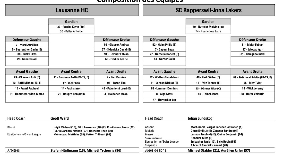 Formation des équipes et joueurs indisponibles pour le match Lausanne vs Rapperswil 11/02/2025 Follow SwissHabs Derniers articles Il y a 33 minutes Connor McDavid atteint les 100 points pour une sixième saison consécutive Il y a une heure Benoît Groulx n'exclu pas de prolonger avec Zoug Il y a une heure Une courte absence pour Damiano Ciaccio Il y a 2 heures Lars Steiner pousse les Huskies vers la victoire Il y a 2 heures Trois points pour Pius Suter dans une belle victoire des Blues