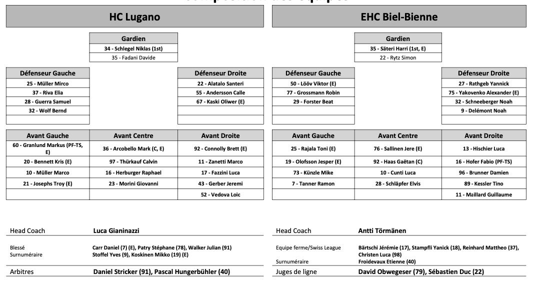 Formation des équipes et joueurs indisponibles pour le match Lugano vs Bienne 05/11/2022 Follow SwissHabs Derniers articles Il y a 4 heures Formation des équipes et joueurs indisponibles pour le match Bienne vs Zoug Il y a 4 heures Formation des équipes et joueurs indisponibles pour le match Rapperswil vs Fribourg Il y a 4 heures Formation des équipes et joueurs indisponibles pour le match Kloten vs Langnau Il y a 4 heures Formation des équipes et joueurs indisponibles pour le match Lausanne vs Zurich Il y a 4 heures Formation des équipes et joueurs indisponibles pour le match Ajoie vs Lugano
