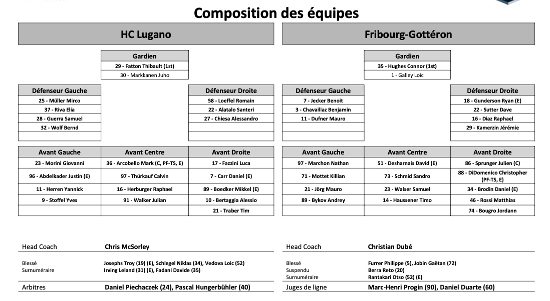 Formation des équipes et joueurs indisponibles pour le match Lugano vs Fribourg 05/03/2022 Follow SwissHabs Derniers articles Il y a une heure EHC Bâle : Deux figures emblématiques raccrochent les patins Il y a 2 heures Emil Molin devrait continuer à porter les couleurs du HCC la saison prochaine Il y a 4 heures Trois joueurs incertains du côté de Davos Il y a 5 heures Genève vs Lausanne et la bataille de la... communication Il y a 6 heures EHC Seewen vs. Hockey Huttwil : l’affiche pour le titre de MyHockey League