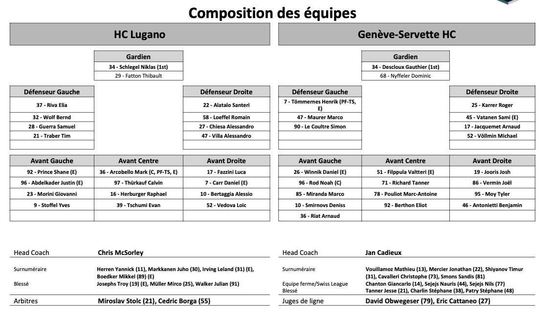 Formation des équipes et joueurs indisponibles pour le match Lugano vs Genève 20/03/2022 Follow SwissHabs Derniers articles Il y a 9 minutes Les stats de Macklin Celebrini et Connor McDavid lors de leurs 135 premiers matchs Il y a 35 minutes Roman Josi à l'interview Il y a 44 minutes OHL : un record pour Christian Kirsch et les Rangers Il y a 52 minutes Une victoire aux tirs au but pour les Predators Il y a 9 heures Langnau confirme le départ de plusieurs joueurs