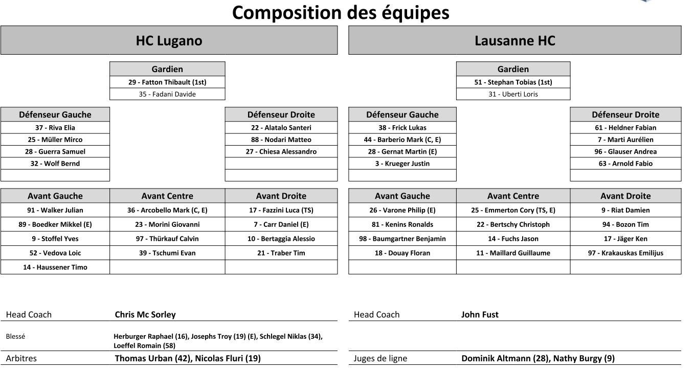Formation des équipes et joueurs indisponibles pour le match Lugano vs Lausanne 02/10/2021 Follow SwissHabs Derniers articles Il y a 55 minutes Cas Nemeth : le Tribunal du Sport de la Fédération rejette l’appel Il y a une heure Deux officialisations de contrat attendues du côté d'Ambri Il y a 2 heures Un avenir très incertain pour Denis Hollenstein Il y a 3 heures Plusieurs mouvements encore attendus autour du HC Bienne, mais Lucas Wallmark n'est pas concerné Il y a 4 heures Deux points pour Pius Suter dans la victoire des Blues
