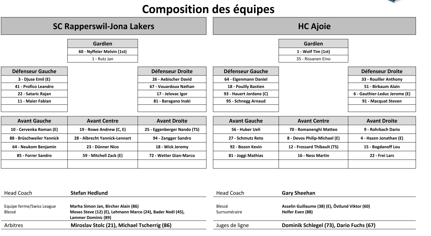 Il y a un jour Finale de Swiss League acte III : formation des équipes et joueurs indisponibles pour le match Sierre vs La Chaux-de-Fonds