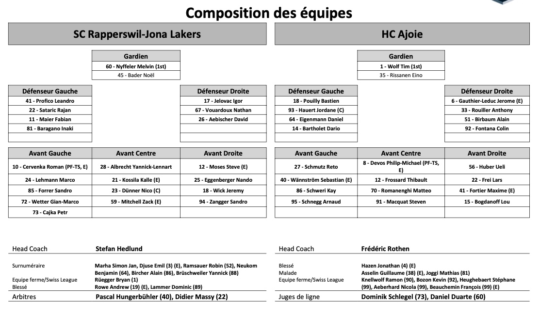 Formation des équipes et joueurs indisponibles pour le match Rapperswil vs Ajoie 12/03/2022 Follow SwissHabs Derniers articles Il y a 5 heures Aleksi Saarela ne retrouvera sans doute pas le championnat suisse Il y a 6 heures Formation des équipes et joueurs indisponibles pour le match Rapperswil vs Berne Il y a 7 heures Nicole Vallario signe un contrat à court terme et devrait voir de l'action Il y a 9 heures Jere Sallinen ne sera pas de retour au HC Bienne Il y a 12 heures La National League communique à son tour sur les propositions de réformes