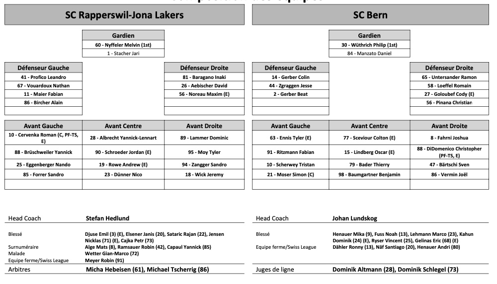 Formation des équipes et joueurs indisponibles pour le match Rapperswil vs Berne 28/10/2022 Follow SwissHabs Derniers articles Il y a 37 minutes Formation des équipes et joueurs indisponibles pour le match Zurich vs Genève Il y a 44 minutes Formation des équipes et joueurs indisponibles pour le match Davos vs Kloten Il y a 46 minutes Formation des équipes et joueurs indisponibles pour le match Lugano vs Lausanne Il y a 48 minutes Formation des équipes et joueurs indisponibles pour le match Langnau vs Rapperswil Il y a 50 minutes Formation des équipes et joueurs indisponibles pour le match Zoug vs Ambri