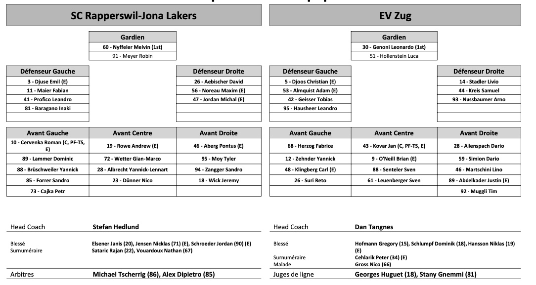 Formation des équipes et joueurs indisponibles pour le match Rapperswil vs Zoug 04/02/2023 Follow SwissHabs Derniers articles Il y a une heure La saison de NHL de Nino Niederreiter serait terminée Il y a une heure Les images des matchs de la soirée en National League Il y a 6 heures Formation des équipes et joueurs indisponibles pour le match Bienne vs Zoug Il y a 6 heures Formation des équipes et joueurs indisponibles pour le match Rapperswil vs Fribourg Il y a 6 heures Formation des équipes et joueurs indisponibles pour le match Kloten vs Langnau