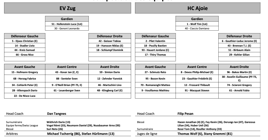 Formation des équipes et joueurs indisponibles pour le match Zoug vs Ajoie 24/09/2022 Follow SwissHabs Derniers articles Il y a une heure La saison de NHL de Nino Niederreiter serait terminée Il y a une heure Les images des matchs de la soirée en National League Il y a 7 heures Formation des équipes et joueurs indisponibles pour le match Bienne vs Zoug Il y a 7 heures Formation des équipes et joueurs indisponibles pour le match Rapperswil vs Fribourg Il y a 7 heures Formation des équipes et joueurs indisponibles pour le match Kloten vs Langnau