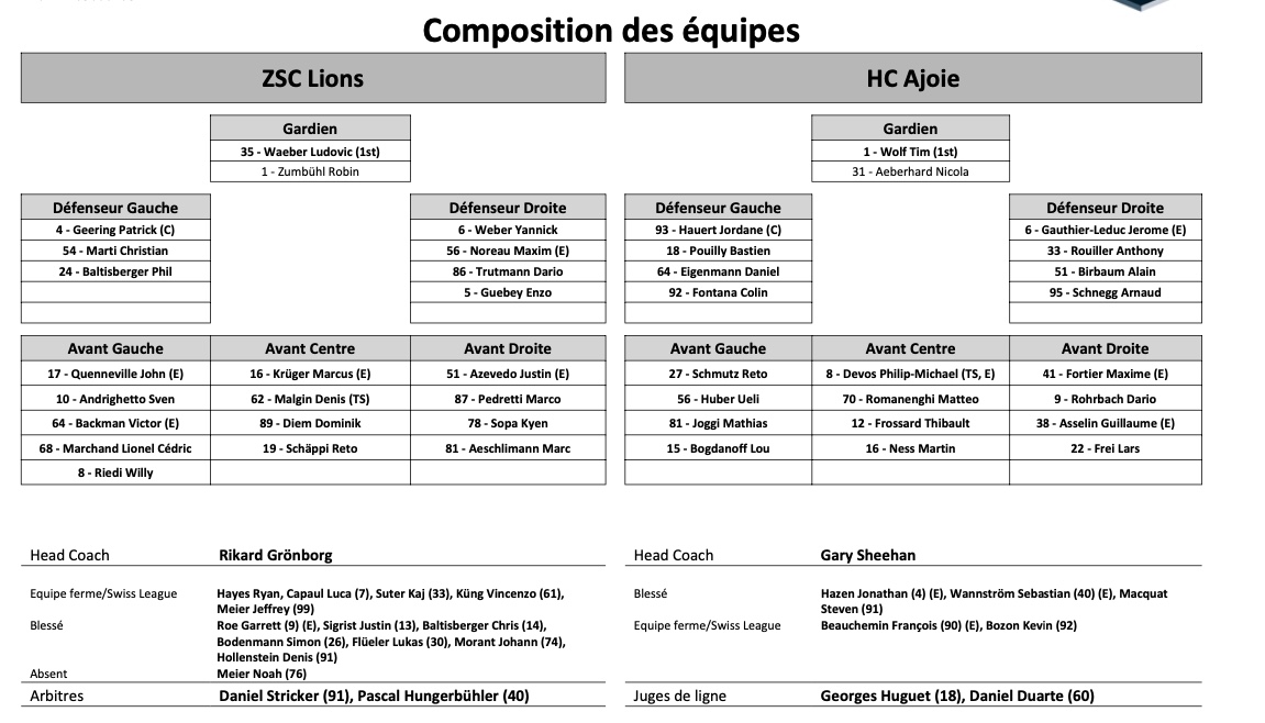 Formation des équipes et joueurs indisponibles pour le match Zurich vs Ajoie 20/12/2021 Follow SwissHabs Derniers articles Il y a 57 minutes National League : Zurich file en demi-finale, Genève reprend l'avantage de la glace Il y a une heure Swiss League : une finale entre Sierre et la Chaux-de-Fonds Il y a 5 heures Lino Martschini vise un nouveau contrat après sa grave blessure Il y a 5 heures Formation des équipes et joueurs indisponibles pour le match Lausanne vs Genève Il y a 5 heures Formation des équipes et joueurs indisponibles pour le match Lugano vs Zurich