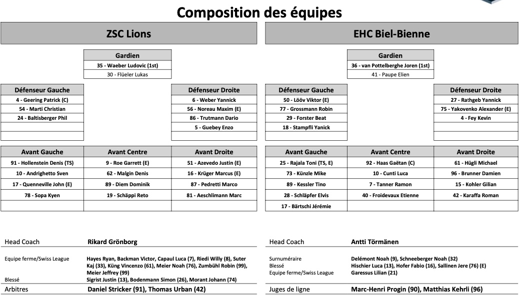 Il y a 2 jours Finale de Swiss League acte II : formation des équipes pour le match La Chaux-de-Fonds vs Sierre