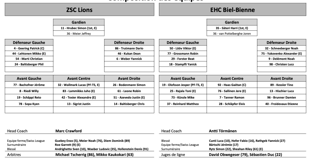 Formation des équipes et joueurs indisponibles pour le match Zurich vs Bienne 15/02/2023 Follow SwissHabs Derniers articles Il y a une heure Zoug dévoile son nouveau logo Il y a une heure Deux prolongations à Zurich Il y a 3 heures Formation des équipes et joueurs indisponibles pour le match Zurich vs Genève Il y a 3 heures Formation des équipes et joueurs indisponibles pour le match Davos vs Kloten Il y a 3 heures Formation des équipes et joueurs indisponibles pour le match Lugano vs Lausanne