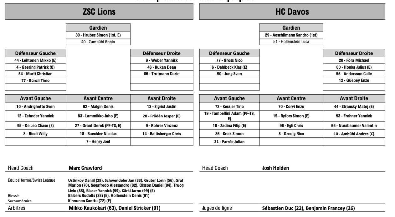 Formation des équipes et joueurs indisponibles pour le match Zurich vs Davos 15/11/2024 Follow SwissHabs Derniers articles Il y a 56 minutes Quelques semaines d'absence pour Dominic Zwerger Il y a 2 heures Les autres faits à retenir de cette nuit de NHL et de celle à venir Il y a 5 heures Fribourg a pu profiter de la vente de feu de Jukurit Il y a 5 heures Un record pour les Stars de Dallas Il y a 5 heures Les Devils s'imposent mais notre trio suisse reste muet