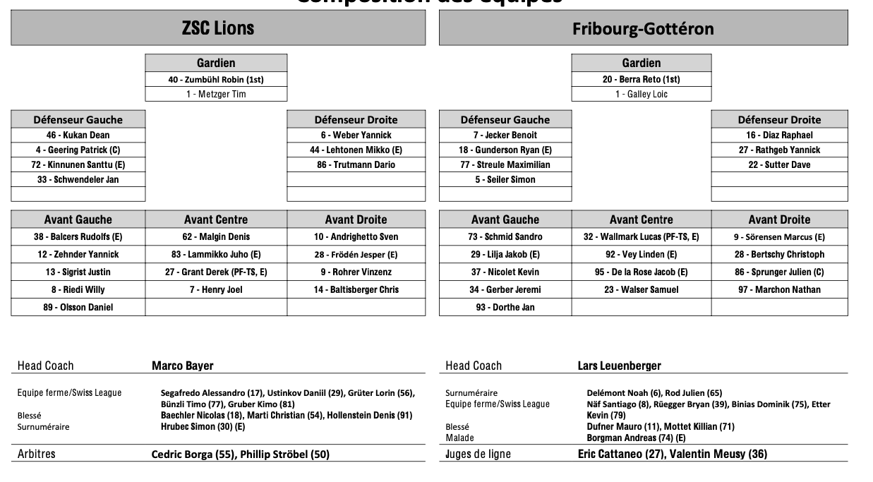 Formation des équipes et joueurs indisponibles pour le match Zurich vs Fribourg 14/02/2025 Follow SwissHabs Derniers articles Il y a 8 heures Davos pourrait signer un nouveau record de National League Il y a 10 heures Rikard Grönborg ne pourra plus parler à ses joueurs trois matchs durant Il y a 11 heures Martin Filander continuera sans doute son parcours en Suède Il y a 12 heures Jacob de la Rose incertain pour le match de demain Il y a 13 heures Fribourg-Gottéron engage un nouvel étranger