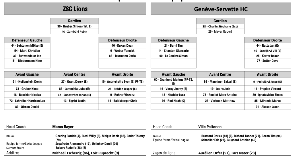 Formation des équipes et joueurs indisponibles pour le match Zurich vs Genève 28/02/2026 Follow SwissHabs Derniers articles Il y a 56 secondes Zoug dévoile son nouveau logo Il y a 8 minutes Deux prolongations à Zurich Il y a 2 heures Formation des équipes et joueurs indisponibles pour le match Zurich vs Genève Il y a 2 heures Formation des équipes et joueurs indisponibles pour le match Davos vs Kloten Il y a 2 heures Formation des équipes et joueurs indisponibles pour le match Lugano vs Lausanne