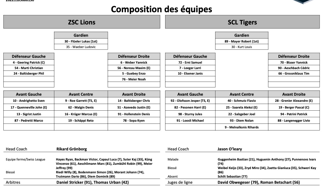 Formation des équipes et joueurs indisponibles pour le match Zurich vs Langnau 31/10/2021 Follow SwissHabs Derniers articles Il y a 2 heures Formation des équipes et joueurs indisponibles pour le match Fribourg vs Rapperswil Il y a 5 heures Nicole Vallario prend du gallon à New-York, Kira Juodikis rejoint l'équipe Il y a 8 heures Mathieu Maret rejoint Martigny Il y a 9 heures Toujours l'incertitude autour d'Enzo Corvi Il y a 9 heures Un nouvel heureux événement pour Kevin Fiala et sa famille