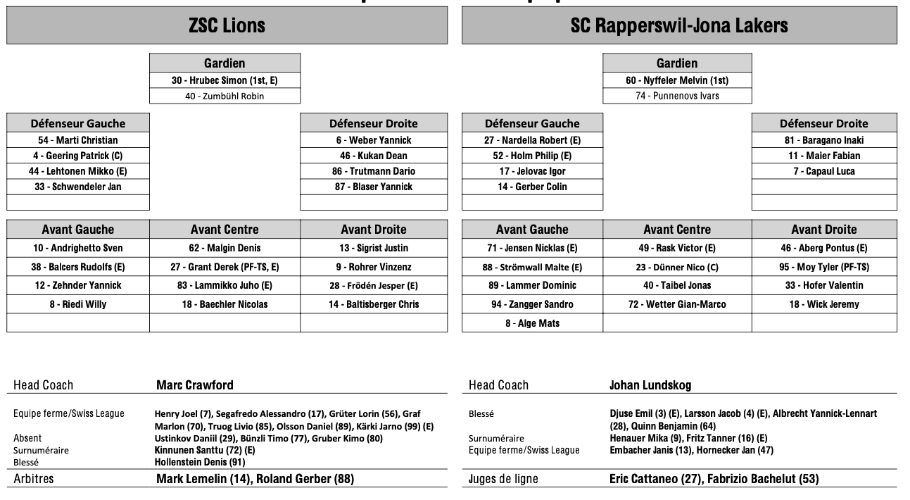 Formation des équipes et joueurs indisponibles pour le match Zurich vs Rapperswil 23/12/2024 Follow SwissHabs Derniers articles Il y a une heure Peter Cajka nous livre ses impressions sur cette fin de saison régulière Il y a 4 heures Chris DiDomenico ne devrait plus reporter le maillot d'Ambri Il y a 4 heures Saison terminée pour Luca Hollenstein, un remplaçant déjà trouvé Il y a 4 heures Coire prolonge son buteur Liekit Reichle Il y a 6 heures Les autres faits à retenir de cette nuit de NHL et de celle à venir