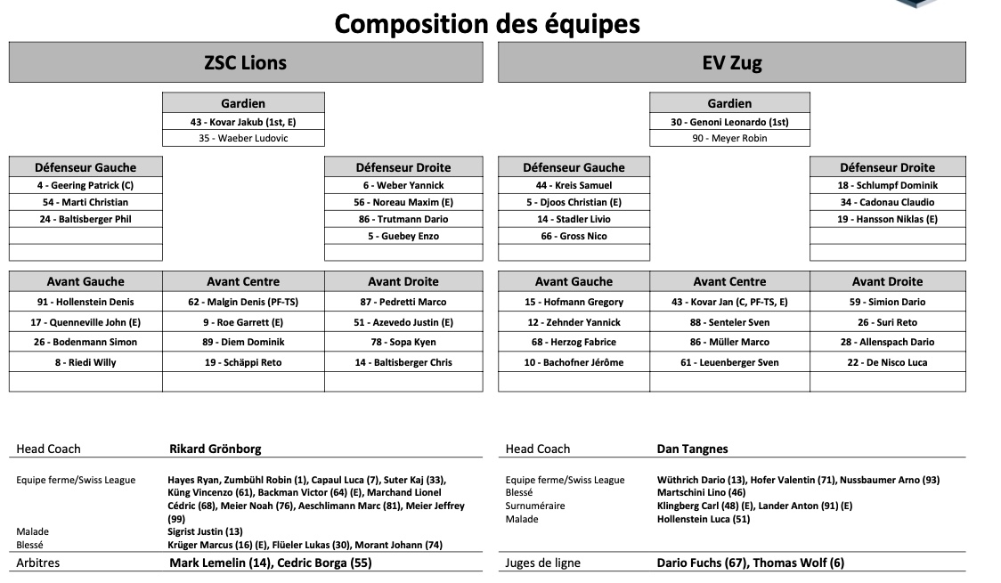 Formation des équipes et joueurs indisponibles pour le match Zurich vs Zoug 22/02/2022 Follow SwissHabs Derniers articles Il y a 2 heures Formation des équipes et joueurs indisponibles pour le match Fribourg vs Rapperswil Il y a 2 heures Formation des équipes et joueurs indisponibles pour le match Davos vs Zoug Il y a 3 heures Petite précision sur le contrat d'Henrik Borgström Il y a 4 heures Plusieurs licences B du côté de Genève Il y a 5 heures Cédric Hächler tire sa révérence