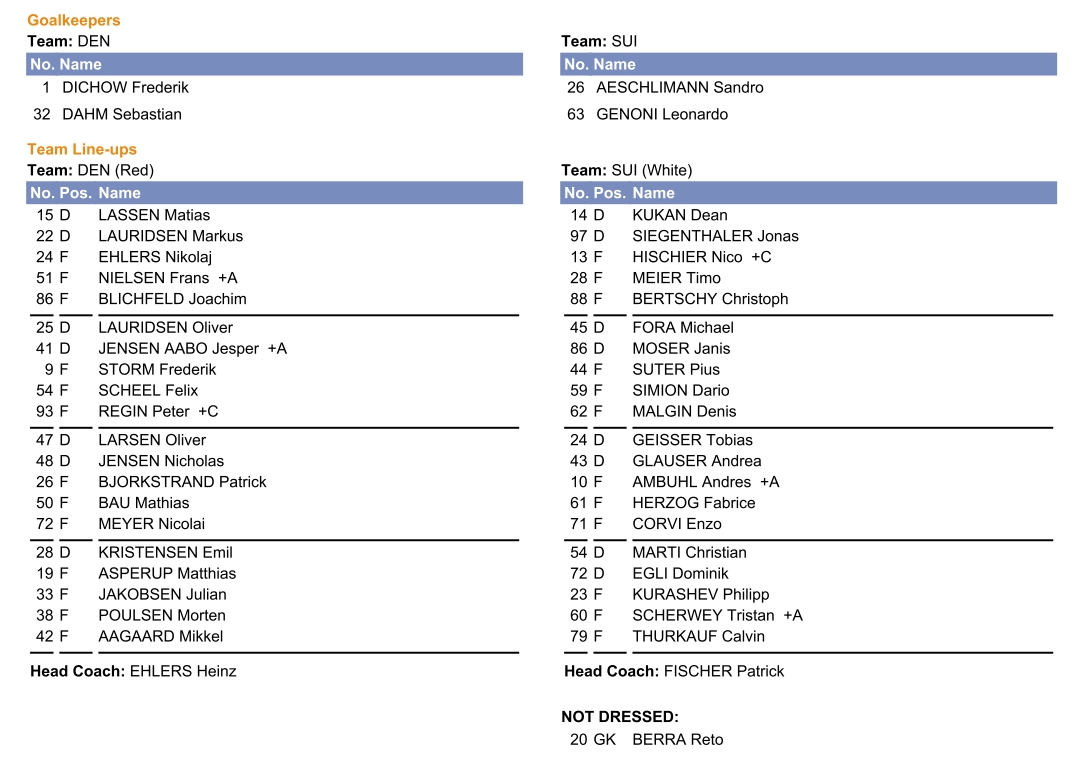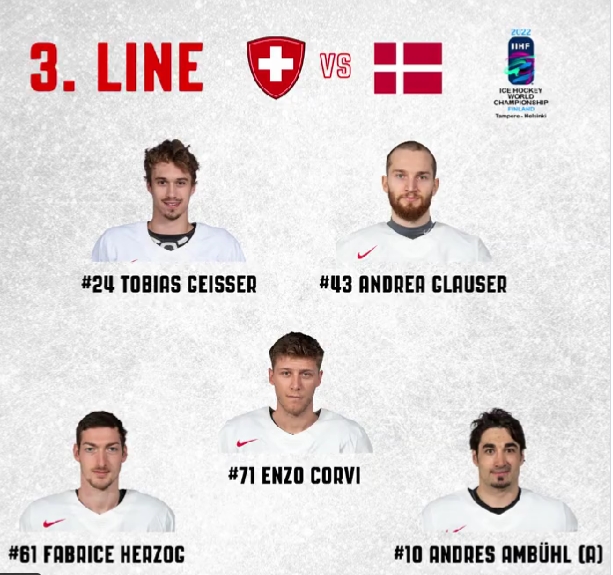 Formation des équipes pour le match Danemark vs Suisse 15/05/2022 Follow SwissHabs Derniers articles Il y a 8 heures Joël Vermin manquera en tout cas l'acte I des Play-ins Il y a 10 heures Lucas Wallmark pourrait quitter Fribourg Il y a 10 heures Un contrat de 8 ans pour Nick Schmaltz Il y a 11 heures Plusieurs départs attendus du côté de Langnau Il y a 12 heures Rien de trop grave pour Sandro Schmid