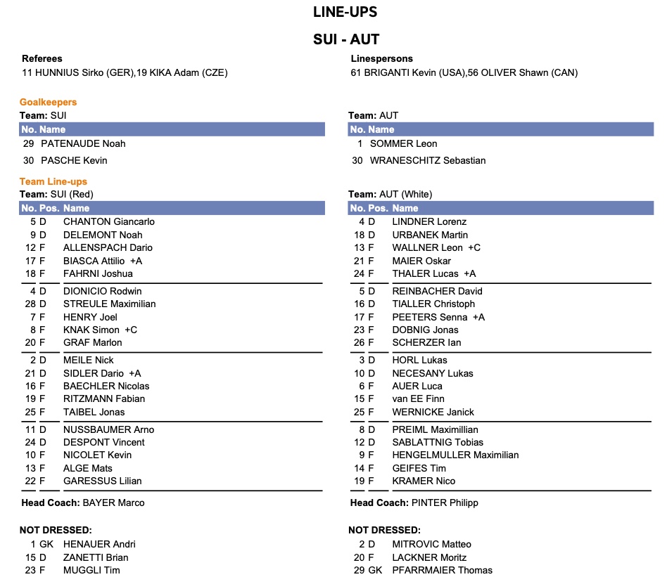 Formation des équipes pour le match décisif Suisse vs Autriche 15/08/2022 Follow SwissHabs Derniers articles Il y a 15 minutes Aperçu des demi-finales de la PostFinance Women’s League Il y a une heure Emmanuel Tacchini signe avec Arosa Il y a 2 heures Des détails sur l'actionnariat de Fribourg-Gottéron Il y a 3 heures Lian Bichsel revient sur la période délicate qu'il a traversée lors de sa blessure Il y a 4 heures Loïc In-Albon prend quatre match de suspension