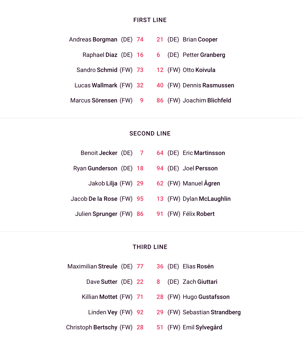 Formation des équipes pour le match Fribourg vs Växjo 19/11/2024 Follow SwissHabs Derniers articles Il y a 30 minutes Tyler Myers à Dallas Il y a une heure Le point sur l'effectif de Lugano Il y a 3 heures Ambri prolonge Jussi Tapola et signe Petr Kodytek Il y a 4 heures Robin Grossmann manquera les derniers matchs de la saison régulière Il y a 5 heures Le masque de Remo Giovannini dans les détails