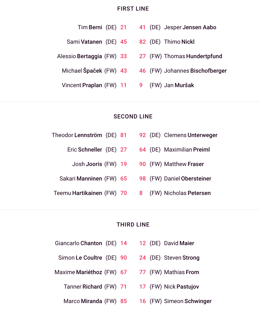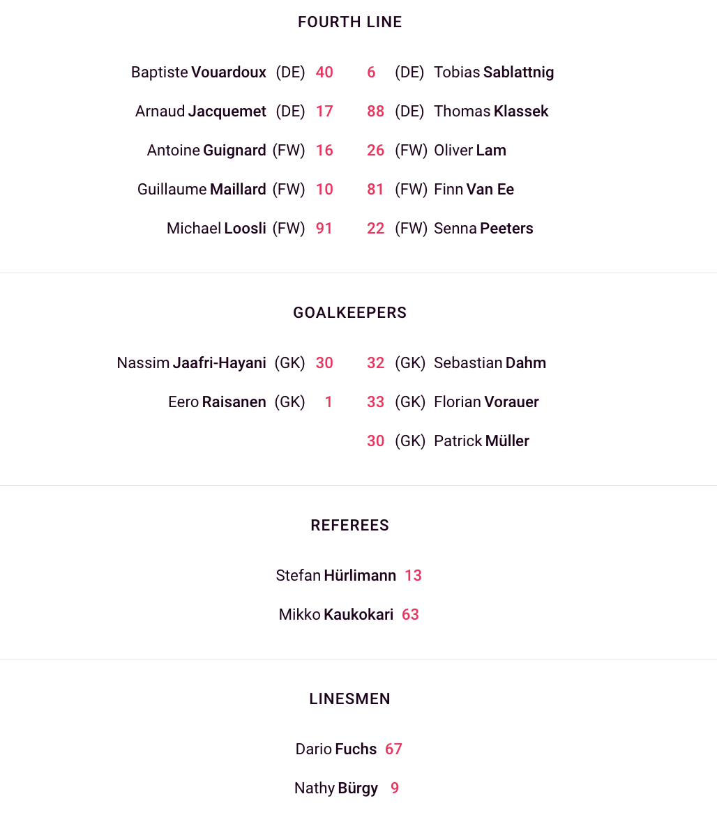 Formation des équipes pour le match Genève vs Klagenfurt 09/10/2024 Follow SwissHabs Derniers articles Il y a 25 minutes Pavel Rosa restera lui aussi derrière le banc du CP Berne Il y a 2 heures Simas Ignatavicius, itinéraire d’un enfant drafté Il y a 6 heures Les Swiss Devils célèbrent la cuisine helvète au New Jersey Il y a 7 heures Un match de suspension et une amende contre Jakob Lee Il y a 8 heures Davos et Fribourg joueront la ligue des champions