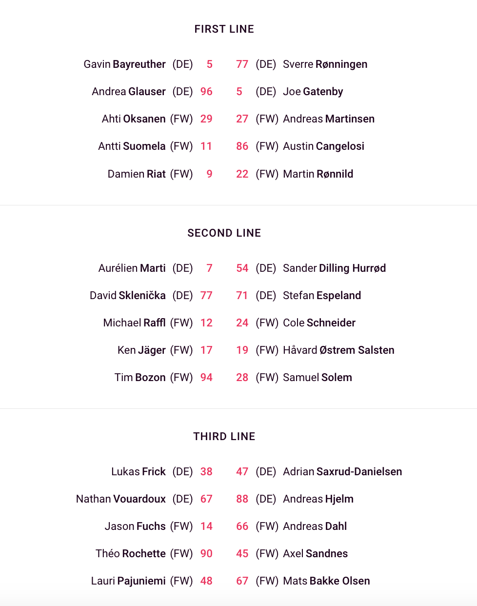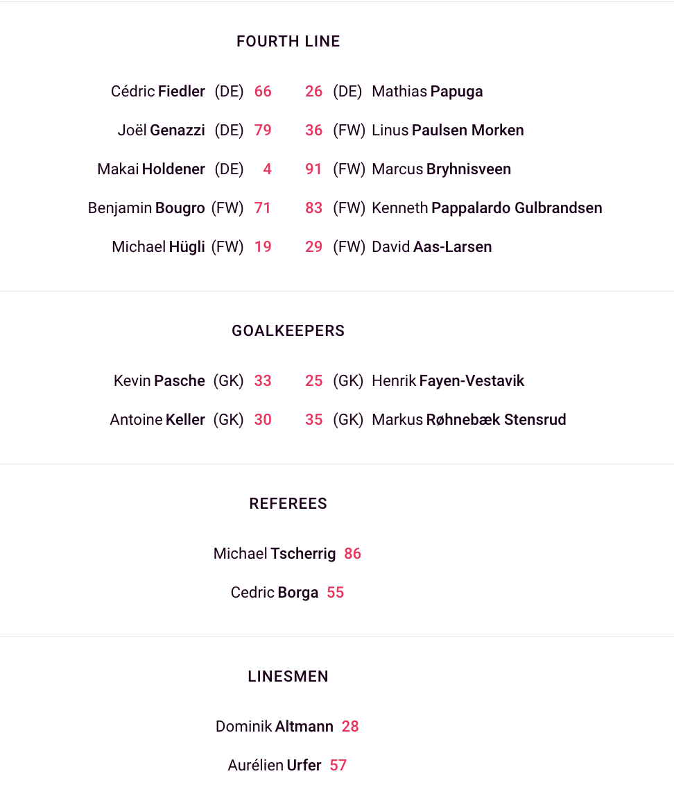 Formation des équipes pour le match Lausanne vs Storhamar 09/10/2024 Follow SwissHabs Derniers articles Il y a 25 minutes Pavel Rosa restera lui aussi derrière le banc du CP Berne Il y a 2 heures Simas Ignatavicius, itinéraire d’un enfant drafté Il y a 6 heures Les Swiss Devils célèbrent la cuisine helvète au New Jersey Il y a 7 heures Un match de suspension et une amende contre Jakob Lee Il y a 8 heures Davos et Fribourg joueront la ligue des champions