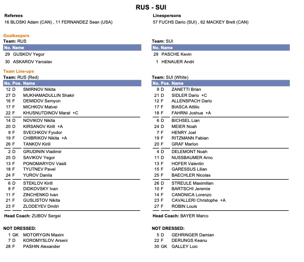 Formation des équipes pour le match Suisse vs Russie 27/12/2021 Follow SwissHabs Derniers articles Il y a 24 minutes Les Suisses des Devils en feu Il y a 28 minutes Retour complet sur la soirée de National League Il y a 11 heures Formation des équipes et joueurs indisponibles pour le match Zoug vs Davos Il y a 11 heures Formation des équipes et joueurs indisponibles pour le match Rapperswil vs Fribourg Il y a 12 heures Les frères Raffl prolongent à Salzbourg