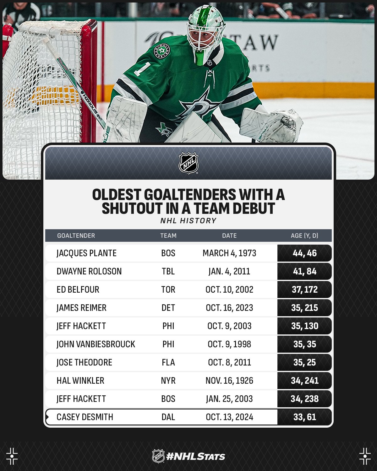 Gardien les plus âgés à réussir un blanchissage au premier match avec leur nouvelle équipe 14/10/2024 Follow SwissHabs Derniers articles Il y a 5 heures Plusieurs joueurs touchés du côté de Davos Il y a 6 heures Kevin Fiala aura un nouveau coach Il y a 7 heures Pavel Rosa restera lui aussi derrière le banc du CP Berne Il y a 9 heures Simas Ignatavicius, itinéraire d’un enfant drafté Il y a 13 heures Les Swiss Devils célèbrent la cuisine helvète au New Jersey