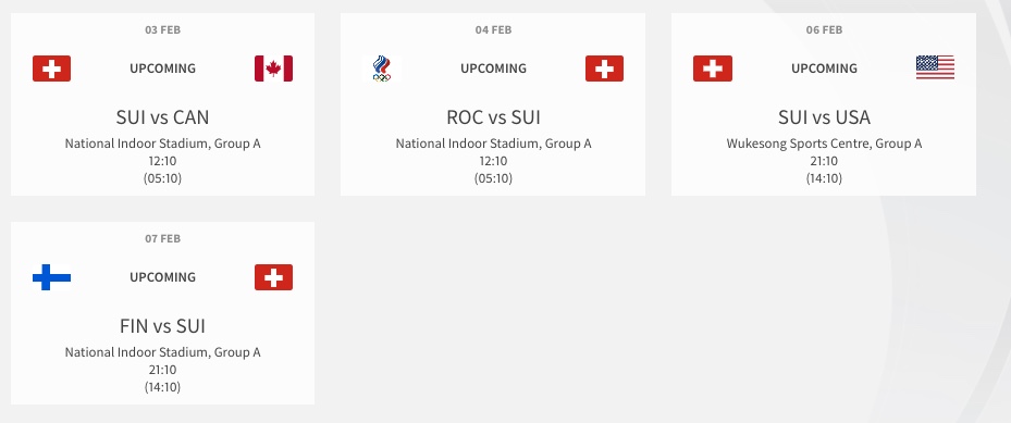 Jeux Olympiques : les Suisses entameront leur tournoi face à la Russie et les Suissesses face au Canada
