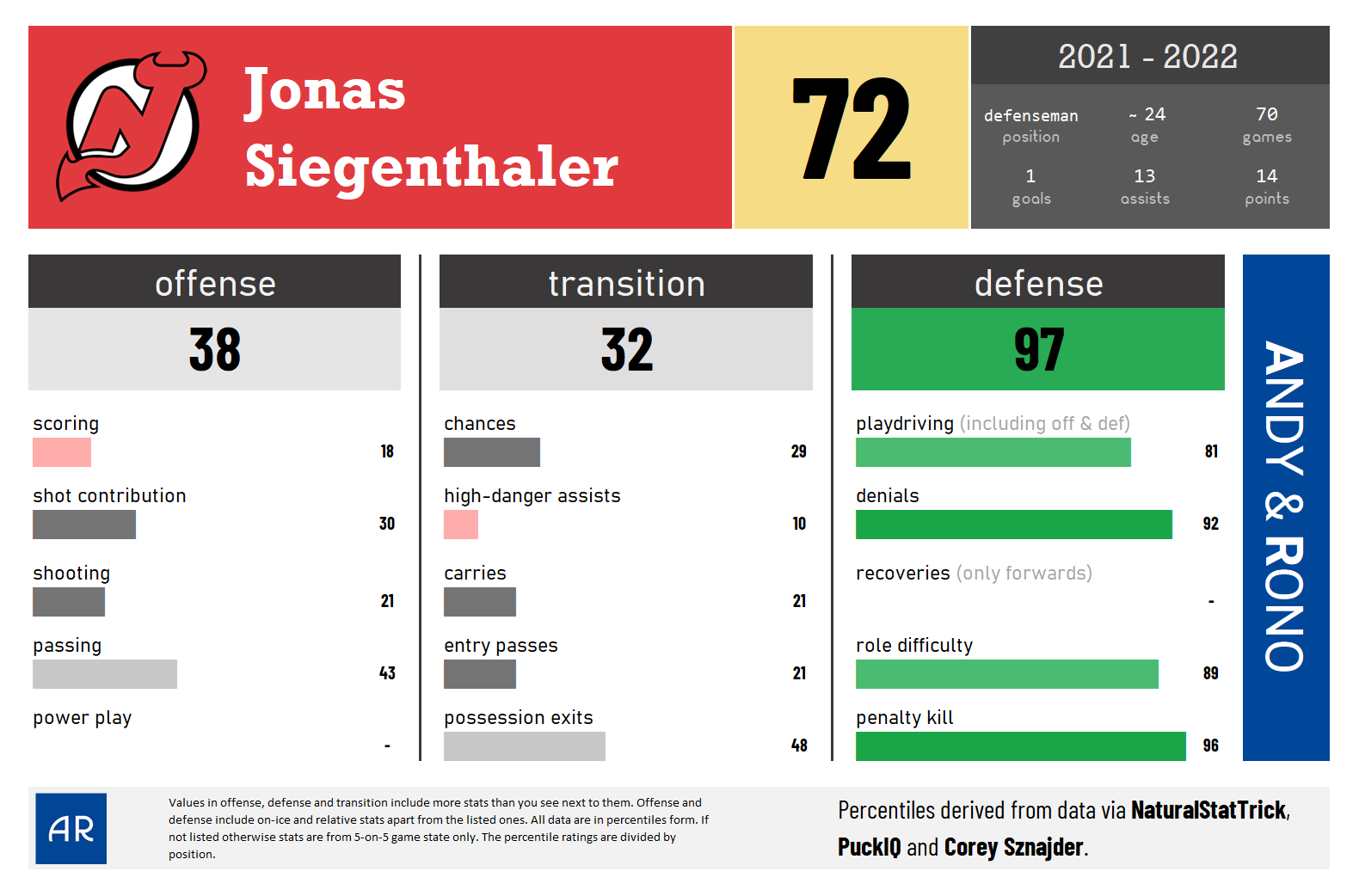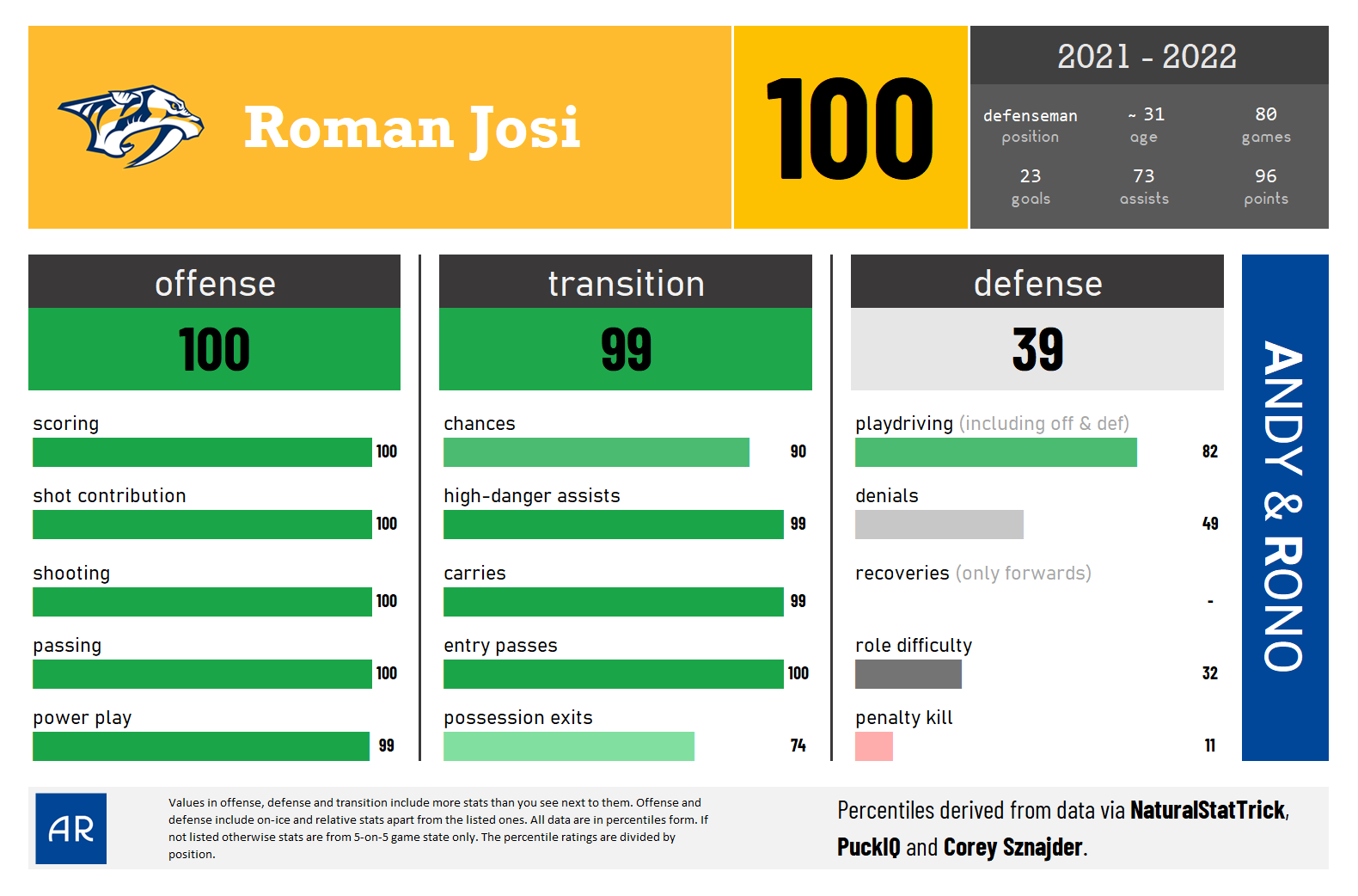 Jonas Siegenthaler ressort comme meilleur défenseur défensif alors que c'est le côté offensif de Roman Josi qui est mis en avant. Voici le détail de l'analyse :