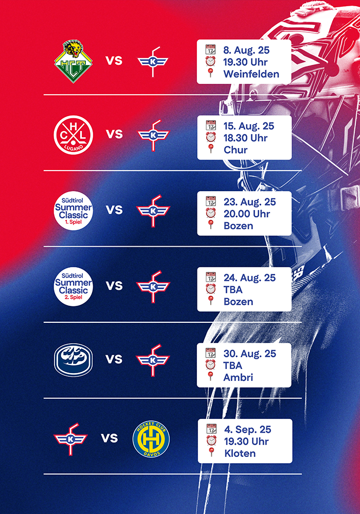 Kloten annonce son programme de préparation 13/05/2025 Follow SwissHabs Derniers articles Il y a 48 minutes Le point sur l'infirmerie du HC Bienne Il y a 2 heures Trois nouveaux intronisés au Hall of Fame de Genève Il y a 3 heures Women's League : début des pré-play-offs, les play-out n’auront pas lieu Il y a 3 heures Les autres faits à retenir de cette nuit de NHL et de celle à venir Il y a 5 heures Connor McDavid atteint les 100 points pour une sixième saison consécutive